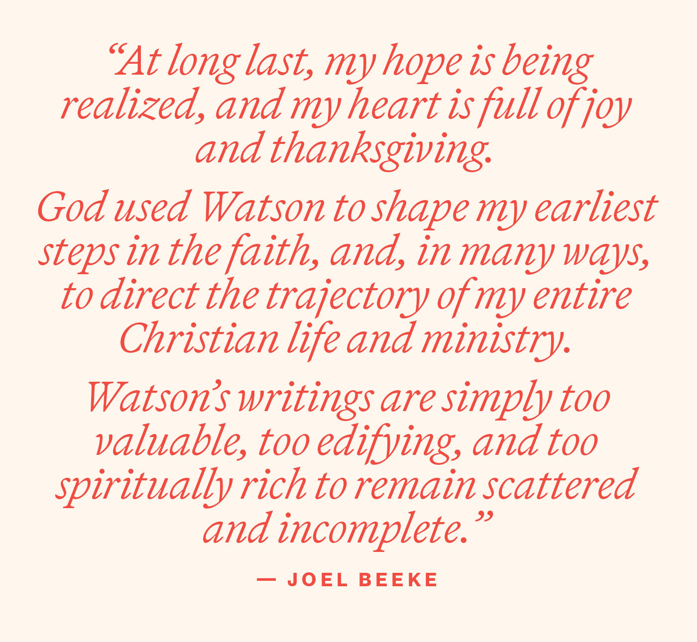 Watson is that rare combination: simple enough for the newest reader, weighty enough for the seasoned pastor. He is Scripture-saturated without being merely proof-textual, doctrinally exact without turning cold, and relentlessly practical without becoming shallow. He writes in memorable sentences that lodge in the conscience, but always to lead you somewhere: into repentance, faith, holiness, comfort, and communion with the triune God. As Joel Beeke testifies, Watson does not merely inform the mind, he searches the heart, steadies the soul in trial, and repeatedly lifts the eyes to the sufficiency and sweetness of Christ.